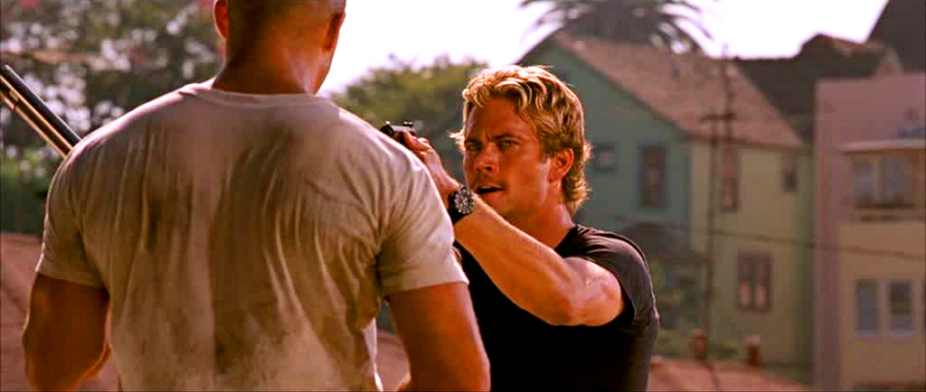 Brian apuntando con su arma a Dominic