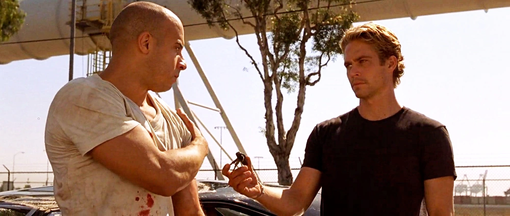 Brian sigue a Dominic cuando se acerca un tren. Ambos vagones evitan por poco ser atropellados por el tren cuando saltan las vías momentos antes de que el tren los pase. Al otro lado de las vías, el Charger de Dominic es atropellado por un camión que se aproxima y cae al otro lado de la calle. Después de sobrevivir al vuelco de su automóvil, Brian ayuda a Dominic a salir de los escombros. Le da las llaves de su vehículo, recordándole a Dominic que le debe un auto de diez segundos. Dominic y Brian abandonan la escena cuando llega la policía, yendo en direcciones opuestas.