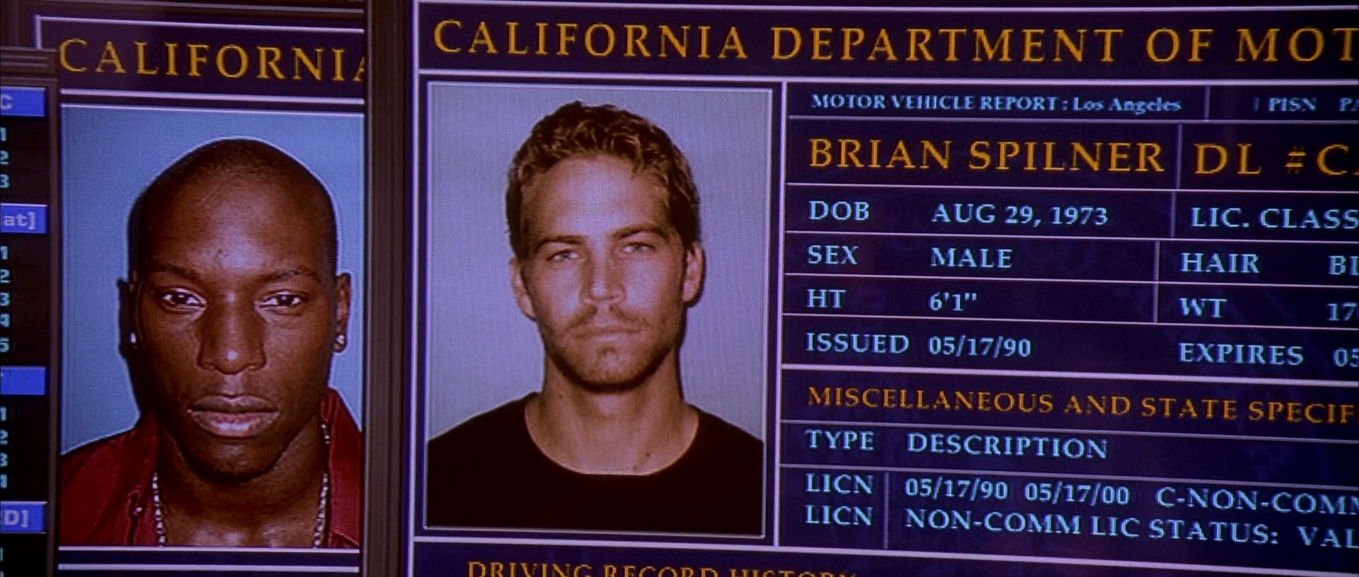 - En 2 Fast 2 Furious, su fecha de nacimiento se muestra como el 29 de agosto de 1973. Sin embargo, una vez más, es la fecha de nacimiento dada a su identidad encubierta. Se desconoce por qué la fecha de nacimiento de su identidad encubierta cambió de julio de 1977 a agosto de 1973.